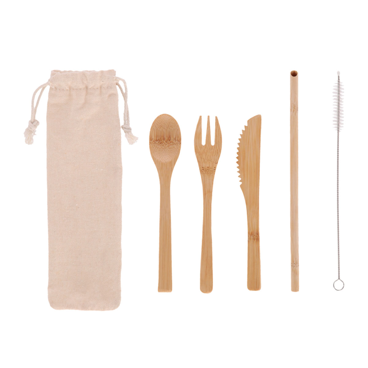 Set de cubiertos de bambú. Incluye tenedor, cuchara, cuchillo, po...