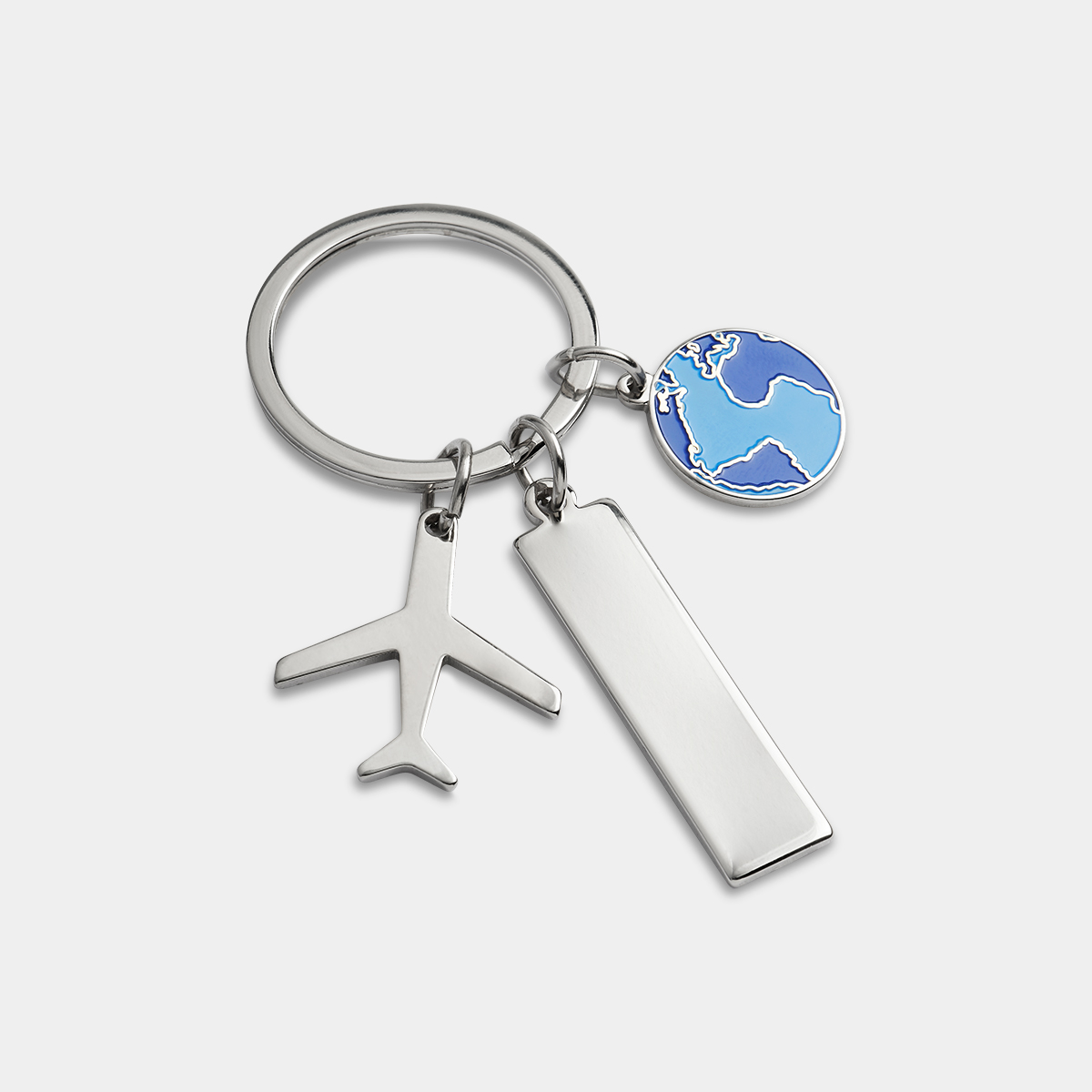 Llavero metálico con una placa para grabado, 1 dije de avión y 1 ...