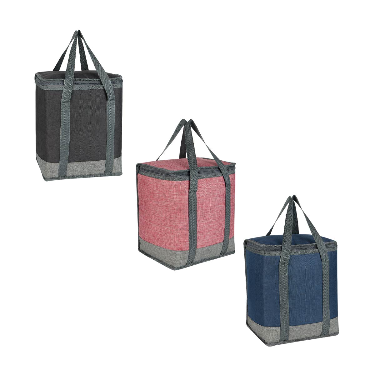 Interior plastificado impermeable. Bolsa principal con cierre, 2 bolsillos frontales con cierre, bolsa frontal superior con cierre, 2 bolsas laterales de red. Incluye correa ajustable. Capacidad de 12 latas.